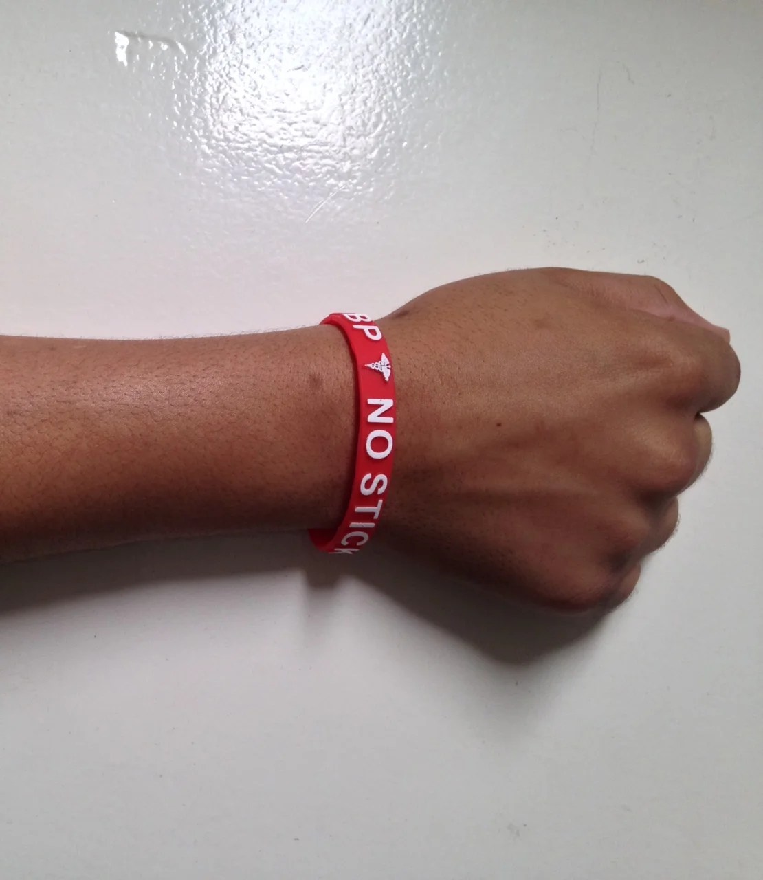 Visit our shop add to saved sellers join our newsletter . I have a medical alert bracelet with the message "no bp, no needles left arm."because i had a lumpectomy and had three lymph nodes removed, if anyone uses a . 2 bracelets included in price; No bp/iv/or needles * this arm * on each bracelet; Consider buying a lymphedema medical alert bracelet that will help remind medical.